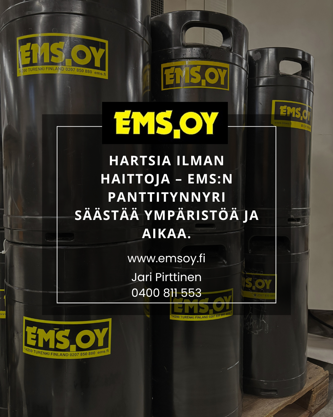 Me myymme mm. ympäristöä säästäviä kierrätettäviä hartsitynnyreitä. EMS Oy:n kehittämä panttijärjestelmä tukee ympäristöystävällistä toimintatapaa. Tynnyrin koko 50 litraa, ja se on varustettu pikaliittimin, joten tynnyrin vaihto tapahtuu muutamassa sekunnissa ympäristöä sotkematta. Hartsitynnyri on erittäin pitkäkestoinen, se riittää jopa 600–1200 tunnin ajaksi.
