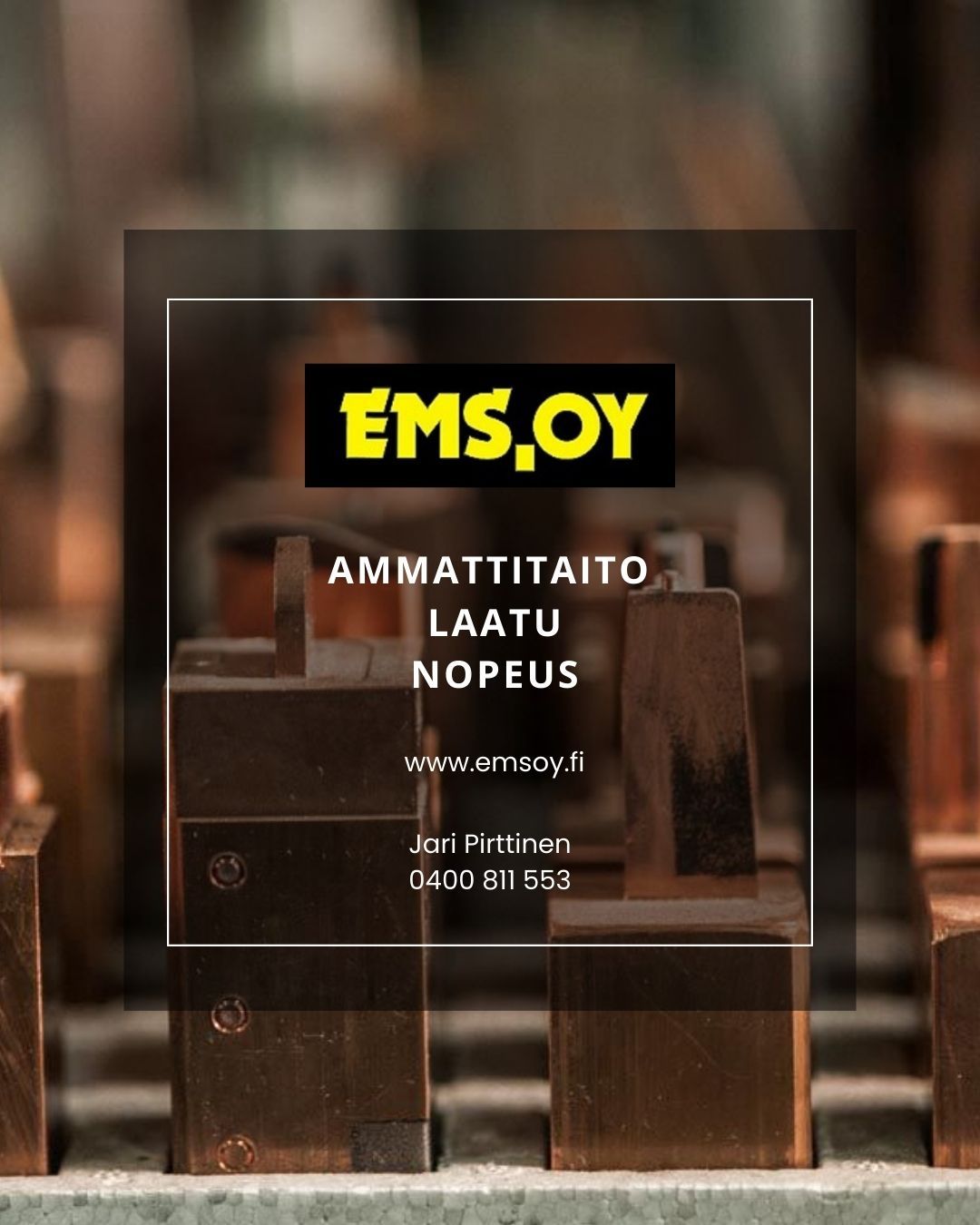 EMS Oy on kuluneen kolmenkymmenen vuoden aikana kehittynyt maahantuontiyrityksestä monipuoliseksi työkalu- ja muottivalmistajaksi. Yritys on lisäksi hienomekaniikkapaja, josta on kasvanut yksi Suomen suurimmista lankasahauksen alihankkijoista ja toimii myös kansainvälisesti.